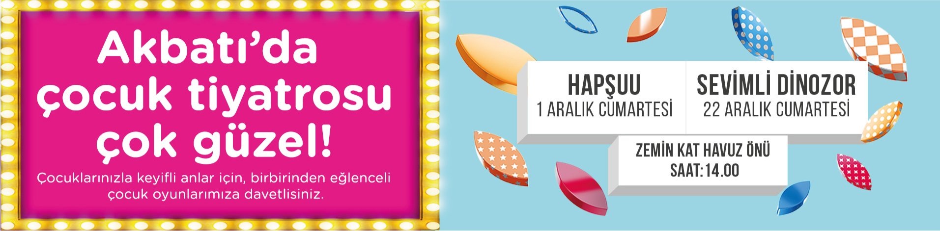 Minik misafirleri için ekim ayında itibaren tiyatro gösterisi sergileyecek olan Akbatı, yıl sonuna kadar ayda iki kez birbirinden keyifli oyunlara ev sahipliği yapacak.