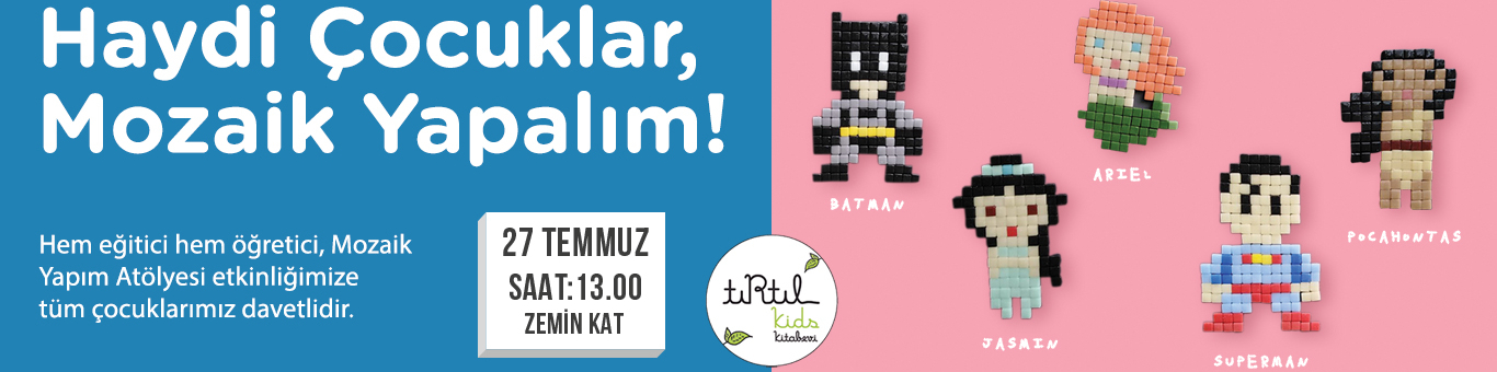 Haydi çocuklar, mozaik yapalım! Hem eğitici hem öğretici, Mozaik Yapım Atölyesi etkinliğimize tüm çocuklarımız davetlidir. Katılım kontenjanla sınırlıdır. 4 yaş ve üzeri çocuklar katılım sağlayabilirler. Kayıt ve detaylı bilgi için 0212 397 70 70 numaralı telefondan ya da www.akbati.com adresinden bilgi alabilirsiniz.