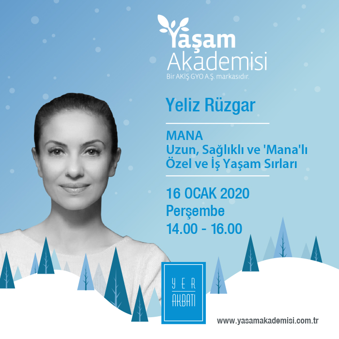 Ocak ayının ikinci konuğu ise 16 Ocak’ta Akbatı misafirleriyle buluşacak olan Yeliz Rüzgar MANA-Uzun, sağlıklı ve ‘mana’lı özel ve iş yaşam sırları” başlıklı söyleşisiyle, 9 Ocak Perşembe günü saat 14:00’te Akbatı misafirleriyle buluşacak. Rüzgar, kişinin yaşamında kendisini gerçekleştirmede, potansiyellerini ortaya çıkarmada, en iyi versiyonlarına ulaşmalarında farkındalık için kılavuzluk edecek.
