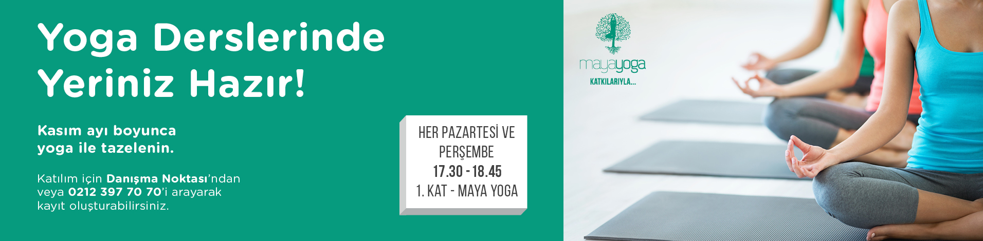 Etkinlikler 1. Katta yer alan Maya Yoga stüdyosunda gerçekleşecektir.